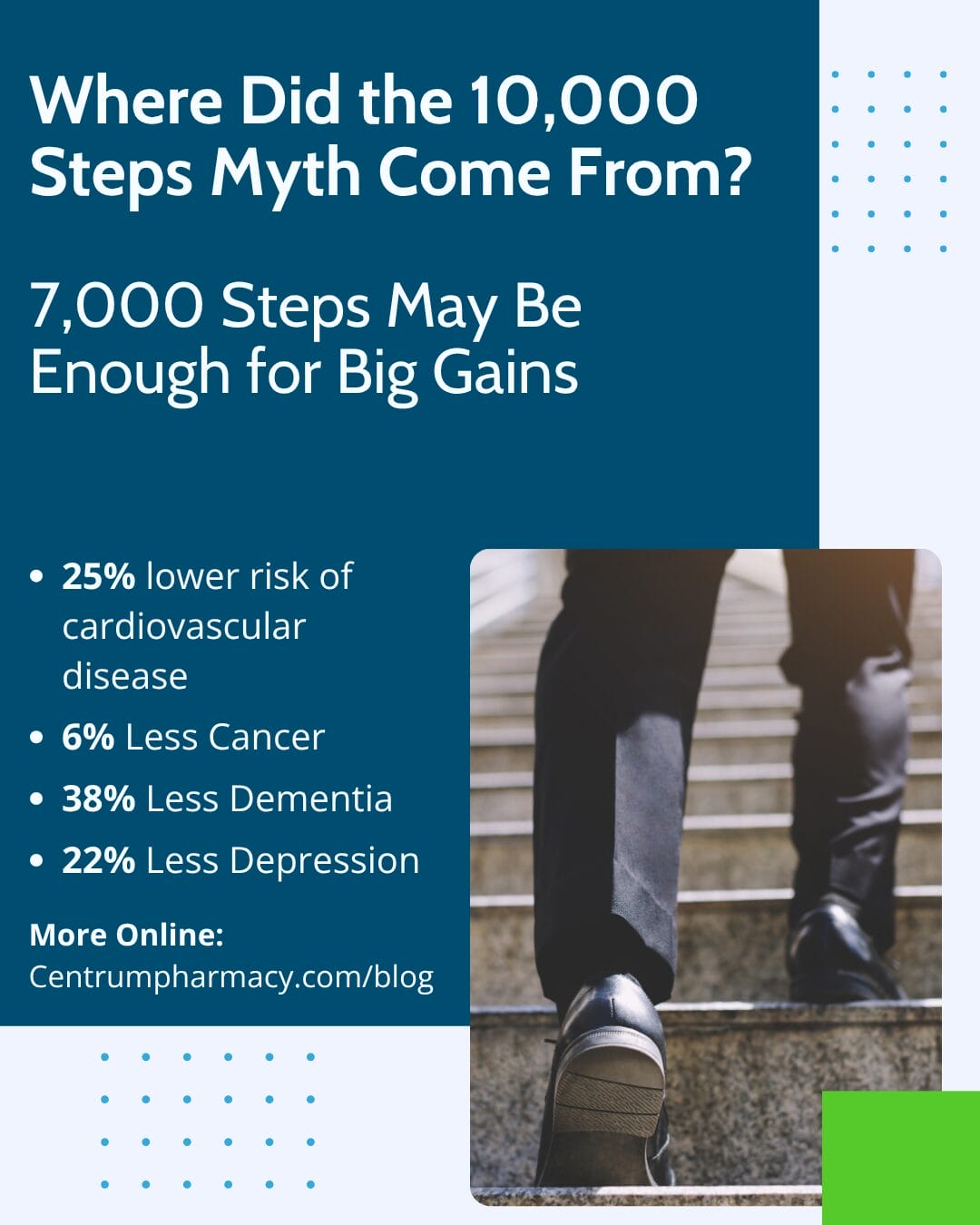 - Don’t stress over 10,000 steps—do what’s manageable for your lifestyle and health.