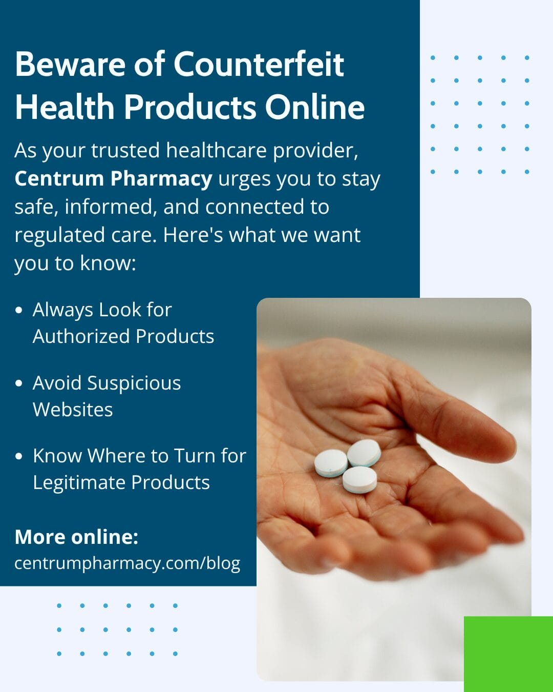 As your trusted healthcare provider, Centrum Pharmacy urges you to stay safe, informed, and connected to regulated care. Here’s what we want you to know: